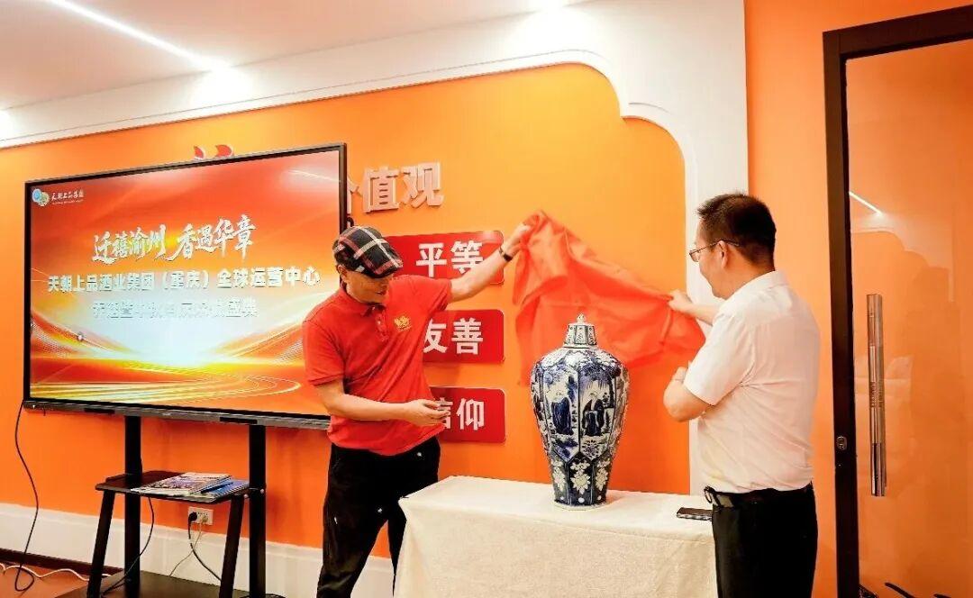 作为天朝上品在重庆地区终端市场的重要营销平台,重庆全球运营中心升级了店内品饮体验和客户服务的创新消费场景,从而进一步强化了天朝上品文化的氛围感和体验感。重庆三元艺术品收藏馆投资人、重庆江北区寸滩艺术品收藏馆投资人、重庆文学艺术表演协会副会长高级审计师韩仁庆赠与重庆全球运营中心青花纪念瓷器,为新店增添文化雅韵,也寓意生意鸿运长久。