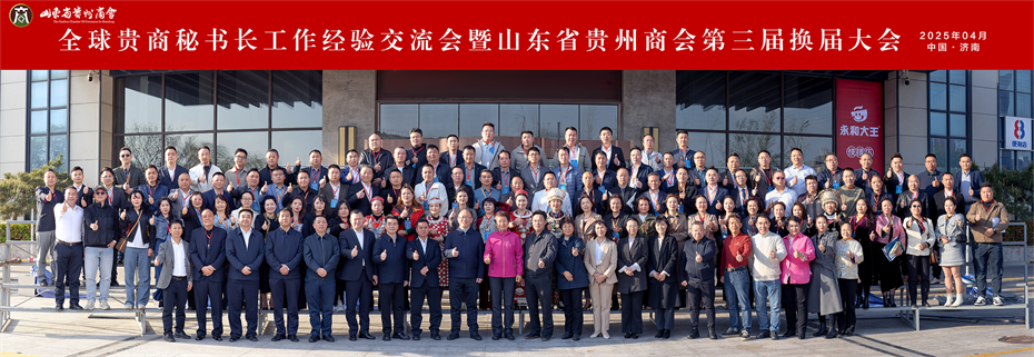 4月12日,“全球贵商秘书长工作经验交流会”在山东济南成功举办。本次会议以“凝聚贵商力量、共谱鲁黔新篇”为主题,旨在深化全球贵商合作,促进资源共享与经验互鉴,推动贵商事业高质量发展。贵州省政协副主席、省工商联主席李汉宇,贵州省工商联党组成员、副主席、省总商会副会长杨从明,贵州省工商联会员部部长李悦,天朝上品集团董事长黄永毅以及来自全国各省市的贵商代表、商会秘书长等120人齐聚一堂,共商发展大计,共谋合作新篇。本次会议由贵商总会常务副会长、秘书长孔祥柱主持。