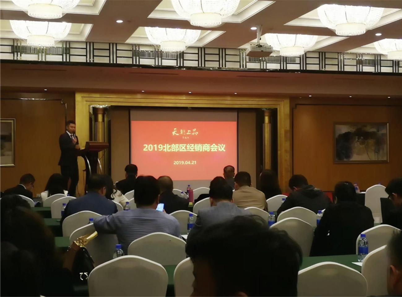 人间最美四月天。天朝上品2019年北部区经销商会议4月21日在北京金陵莲花大酒店举行。天朝上品酒业总裁黄永毅、市场总监张开荣、总裁执行助理曾祥坤出席,北部区销售总经理陈思羽,北京办事处吕刘全、陈映彤及北部区域专卖店负责人、特约经销商等百余人参会。