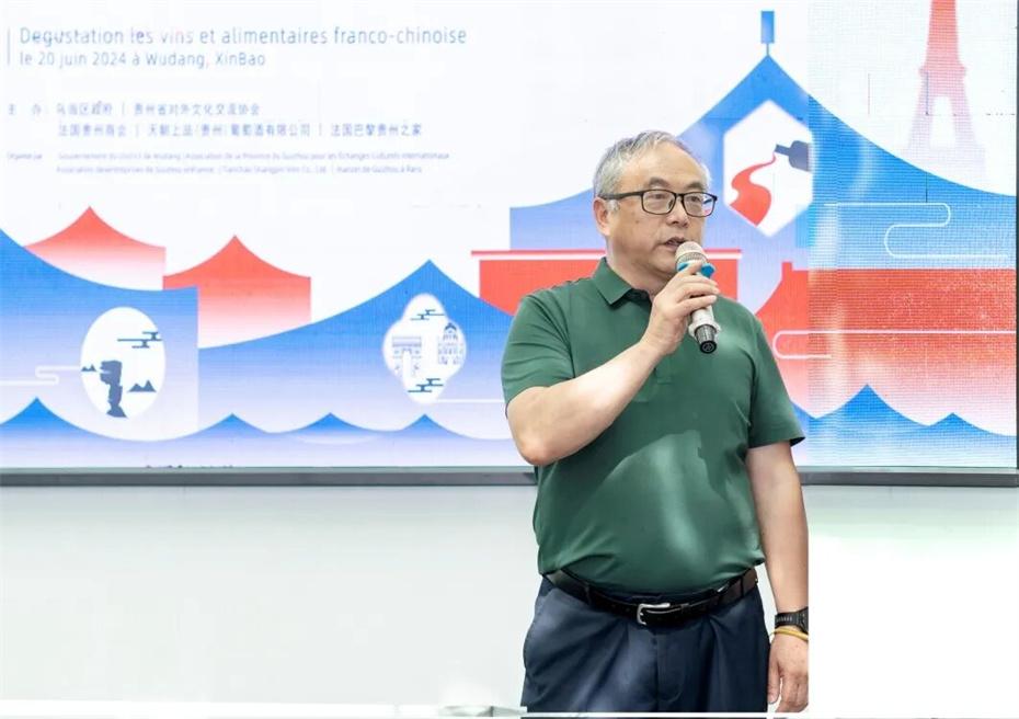 贵州省对外文化交流协会会长何京在会上发言。他表示此次品鉴会意义重大。世界知道贵州酱酒,却不知道贵州葡萄酒。在葡萄酒产业发展方面,贵州有着巨大的发展前景,天朝上品葡萄酒庄落户乌当新堡并投产,也证明了贵州具备生产葡萄酒的气候和条件。此次中法葡萄酒品鉴会的举办,将见证贵州葡萄酒发展的新历史。