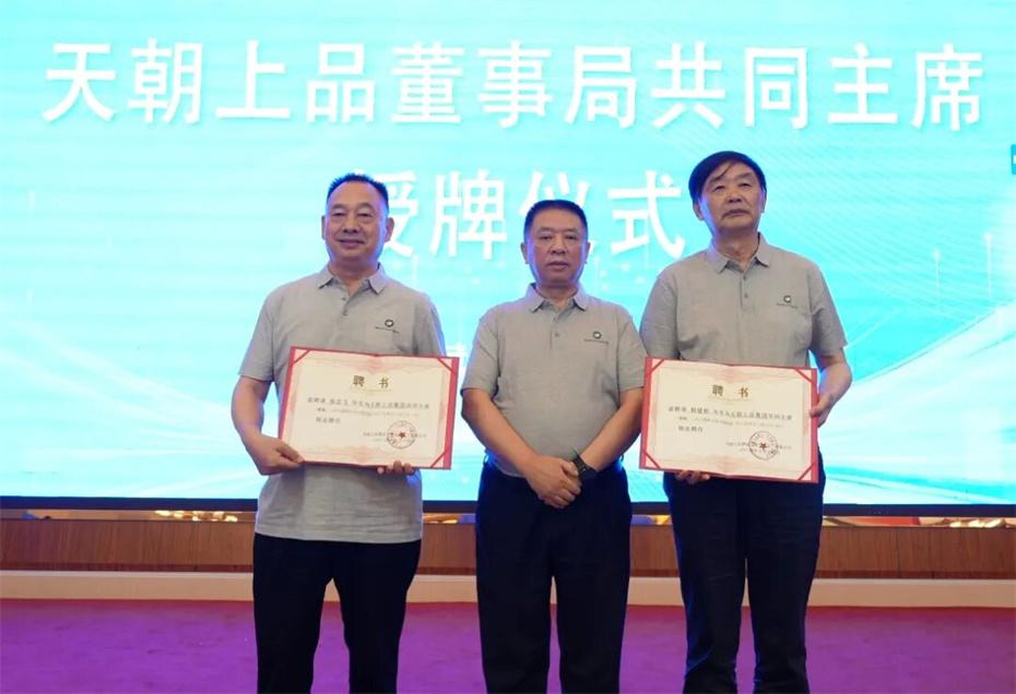 在本次大会上,天朝上品集团聘请华图集团董事长张志飞,战友集团党委书记、董事长杨建桥担任天朝上品集团共同主席。杨建桥董事长表示,战友集团是一支以退役军人和共产党员为主体的团队。“战友”是我们的共同名称,“铁军”是一个品牌标签。虽然大家脱下了军装,转移了战场,但是退役不退色,转业不转向。天朝上品就是“国潮上品”。战友集团与之结盟,相信必将在更广阔的市场携手并进,在更强大的平台上书写新的辉煌。我们要巧借共推绵柔酱香中国酒业团体新标准的东风,成就退役军人转移战场之后的新辉煌!