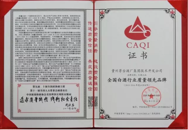 2015年11月6日,茅台酒厂集团技术开发公司在全国白酒行业率先启动产品质量追溯系统,实行“一物一证、一证一密、随机生成、互相绑定、不可复制”,可以真实、准确、科学、系统地记录生产、仓储、物流、销售全过程的信息,实现产品质量保证和追溯,有效解决了目前市场上存在的严重假冒伪劣现象,在探索白酒企业全面建立质量安全追溯体系方面走在了前列,做出了示范。